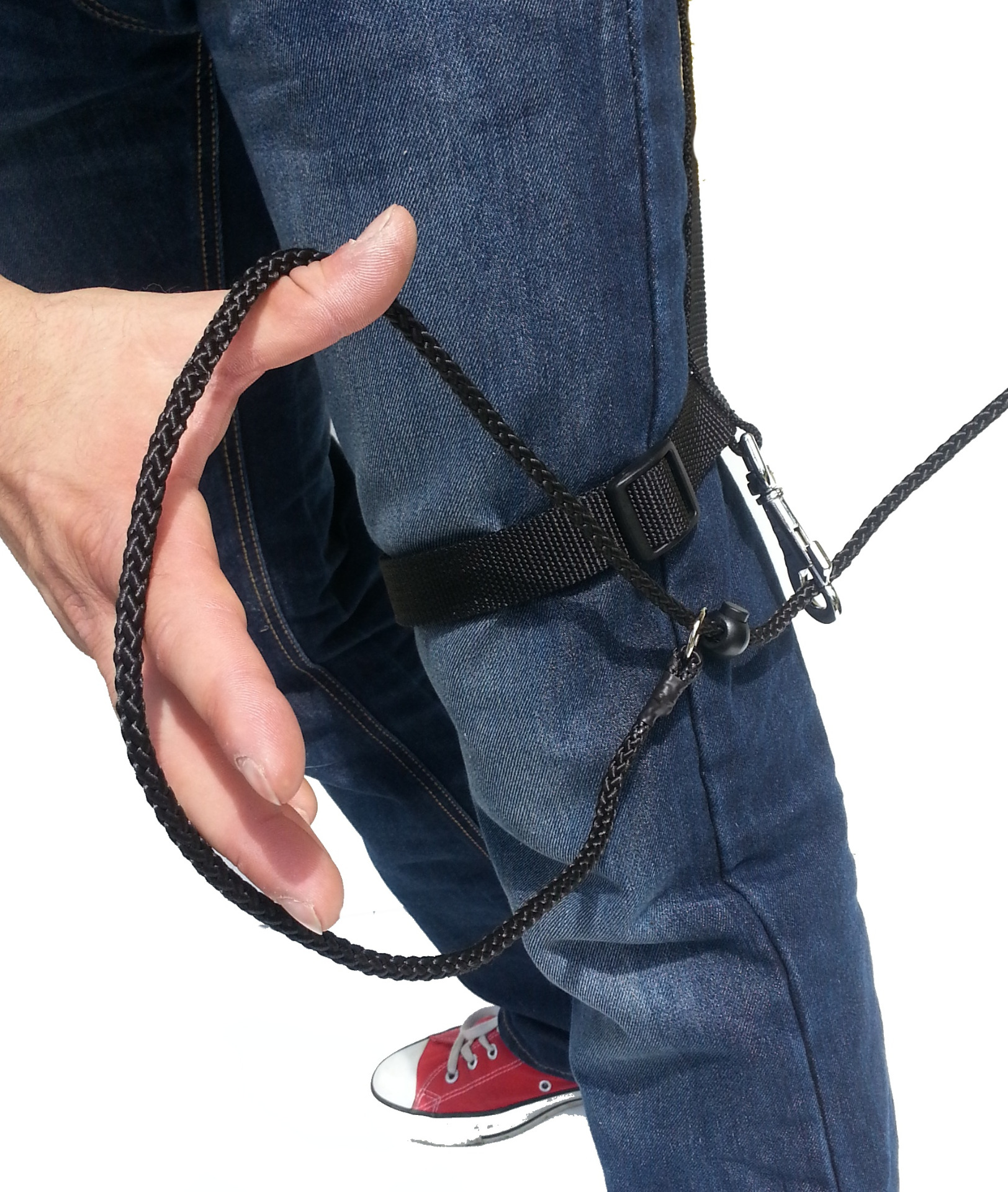 Tento fixační popruh si psovod upevňuje na nohu a pomocí pevné karabiny k němu připevňuje stahovací lanko. Výrobek je navržen tak, aby psovod měl psa neustále pod kontrolou a pes zůstával ve správné pozici při nácviku chůze u nohy.
